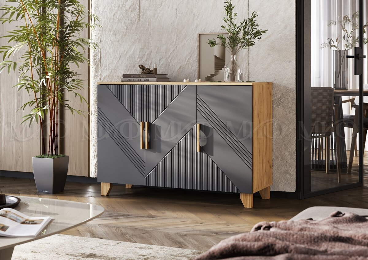 - Комод (1200) Ирис Браш Графит, Дуб Крафт