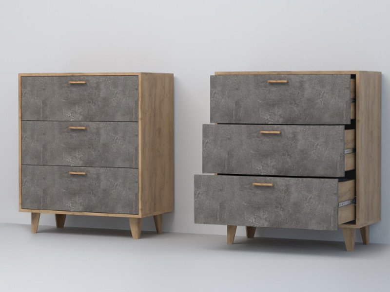 - Комод Эго К-3 3 ящика камень темный на ножках