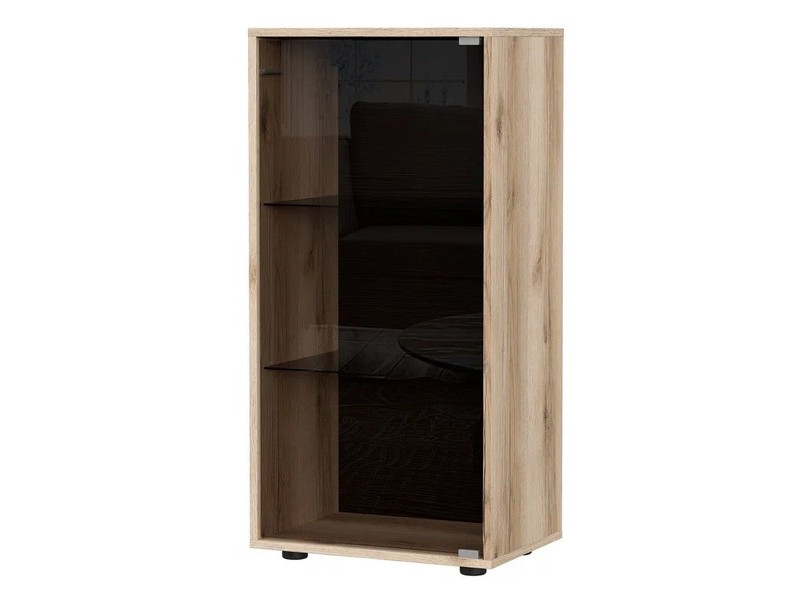 Тумба с тонированным стеклом на отталкивателе устанавливается на пол, подвешивается к стене, устанавливается друг на друга, превращаясь в высокий стеклопенал, равный по высоте и глубине глухому пеналу коллекции «Берген».
