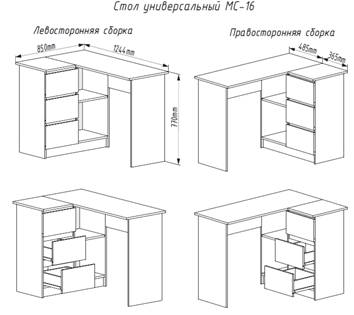 Стол универсальный возможно собрать как на правую так и левую сторону.
