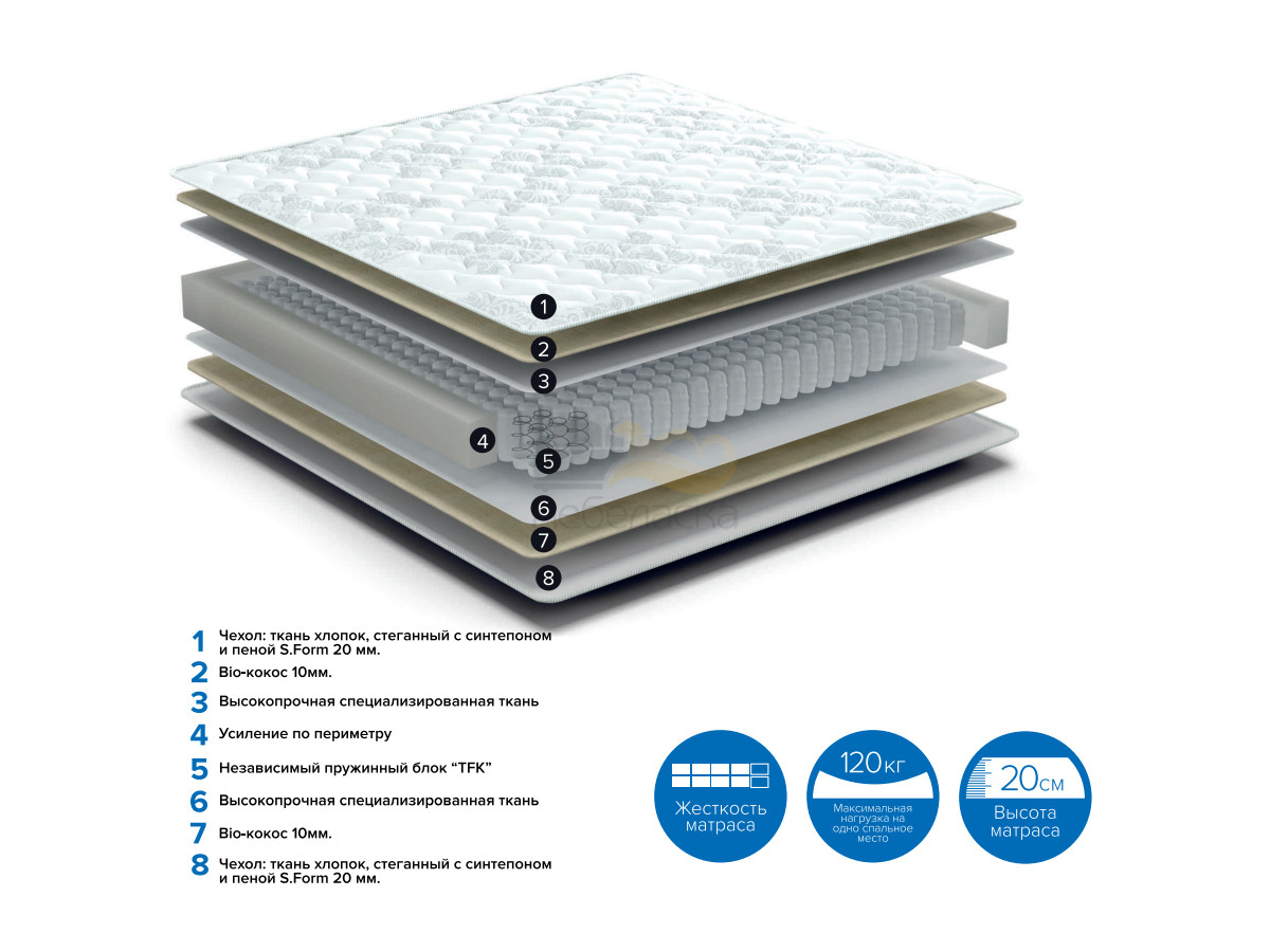 Наполнение: Независимый пружинный блок "TFK 120" + био-кокос + усиление по периметру