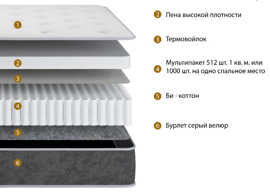 Односторонний матрас не требующий переворачивания, состав:
