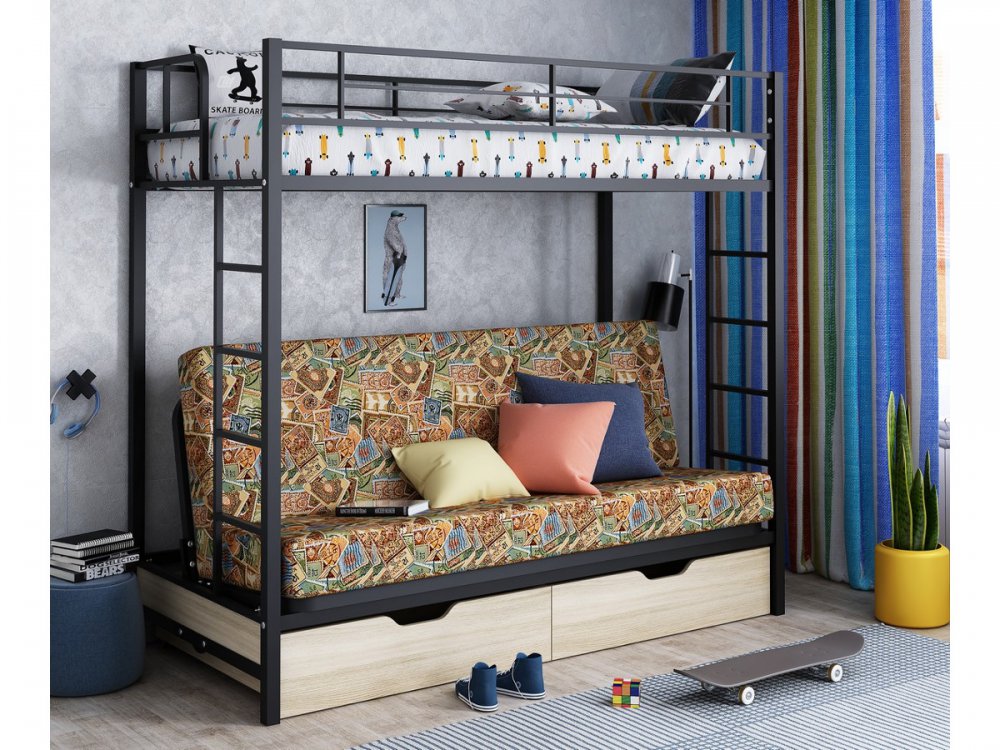 Двухъярусная кровать с диваном Мадлен ЯЯ черный марки