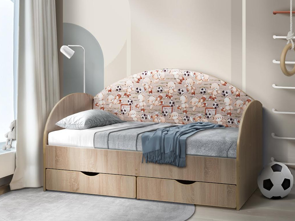 Кровать с продольной мягкой спинкой Софа №11 мишки