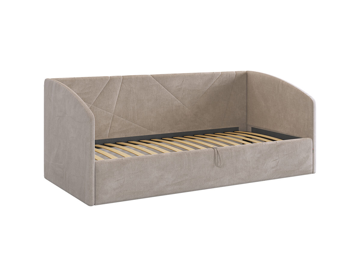 Основание подъемное входит в комплект кровати, петелька для подъема в цвет ткани на корпусе. Кровать имеет огромный ящик для хранения.
