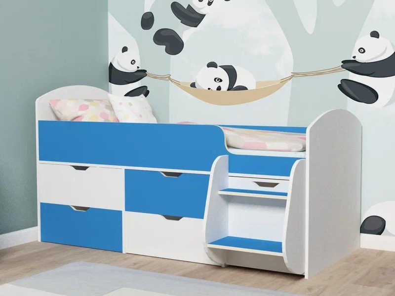 - Кровать Малыш-7 белое дерево-голубой