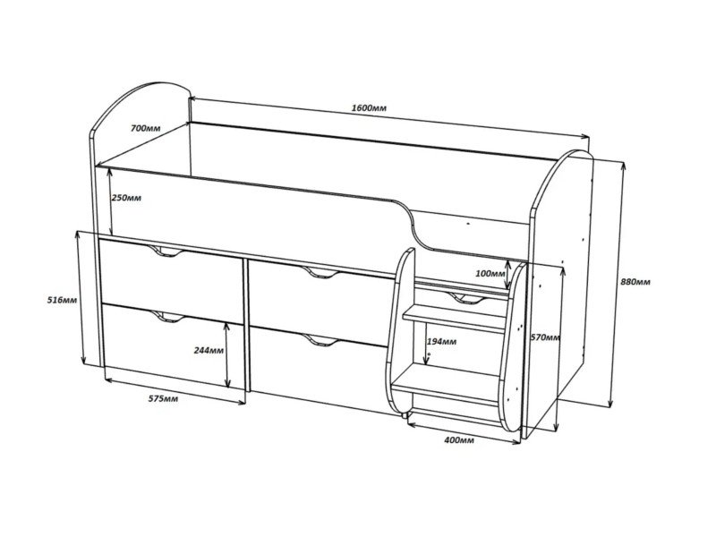 - Кровать Малыш-7 Винтербер-Белое дерево