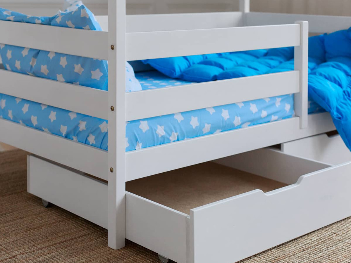К нашей кровати подойдёт матрас размером 80*190 см., высота матраса от 10 до 20 см.