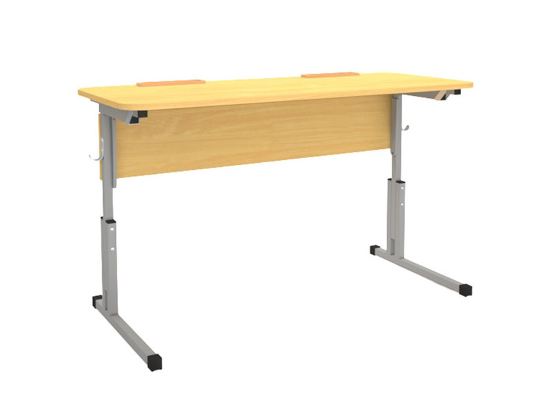 Двухместный ученический стол с закругленными углами, регулируемый по высоте.