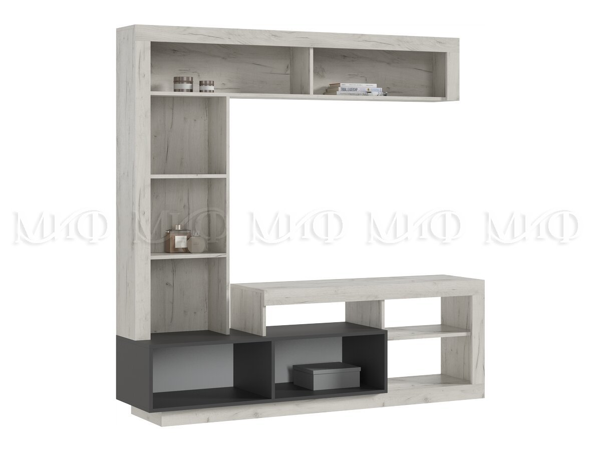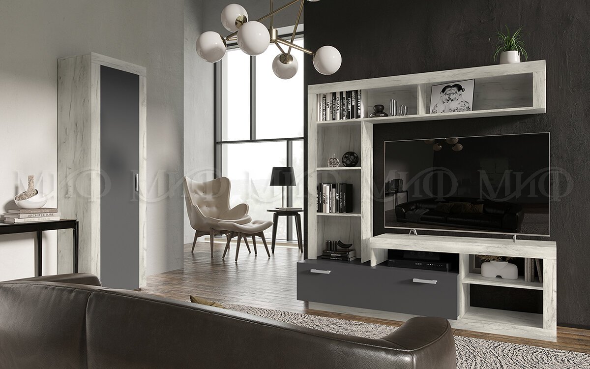- Гостиная Ангара Центральная секция Графит, Дуб Крафт Белый