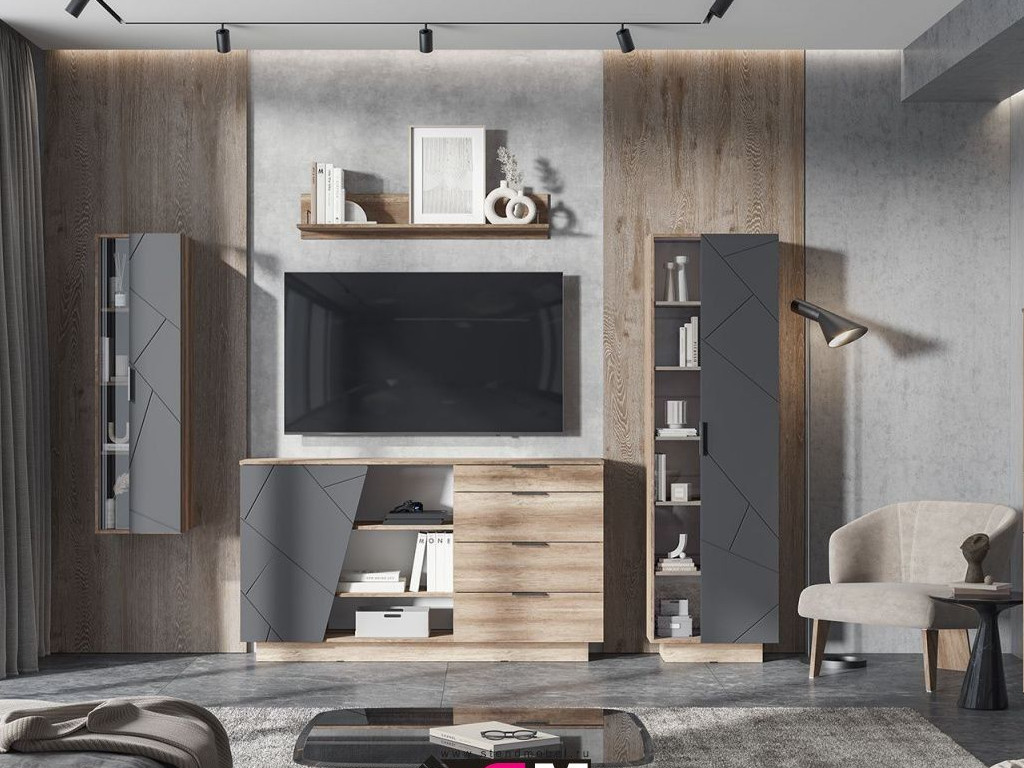 Цена за комплект на фото: КМ 01 Комод 1704 4 ящика, ПЛ 02 Полка, ПН 02 Пенал закрытый со стеклом, ПН 01 Пенал закрытый со стеклом