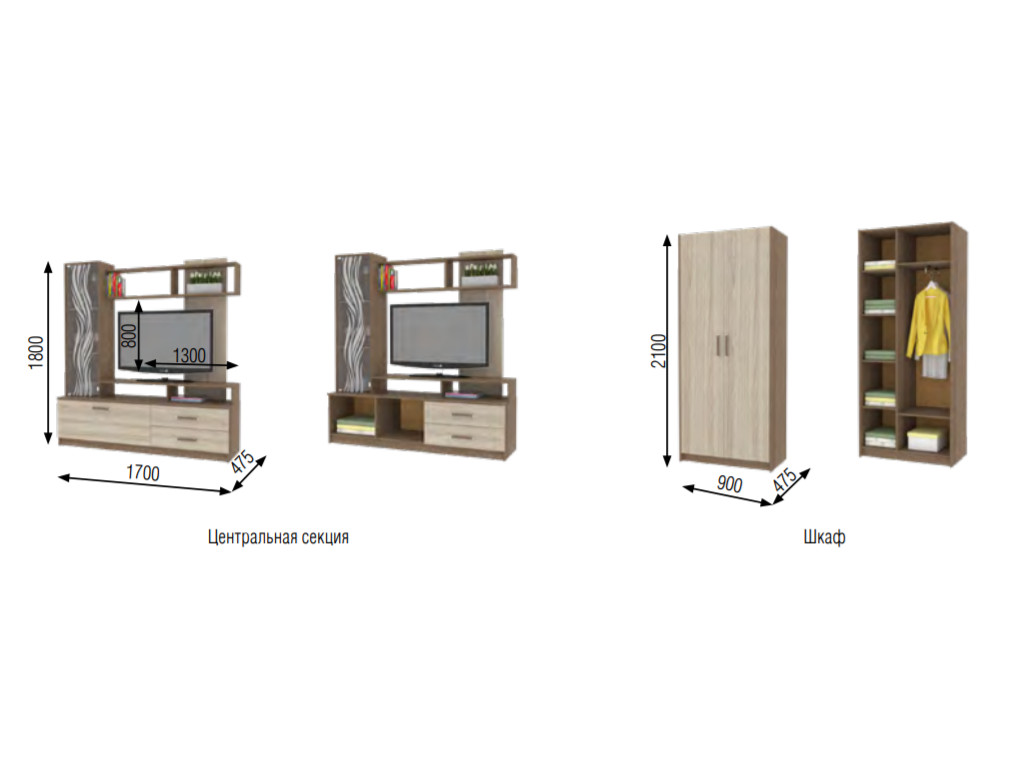 - центральная секция Д1700*Г475*В1800/ ниша ТВ1300*800 мм