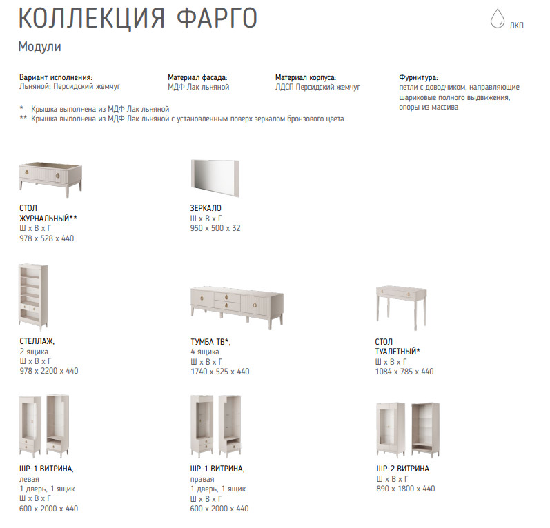 Материал корпуса: ЛДСП Персидский жемчуг, льняной