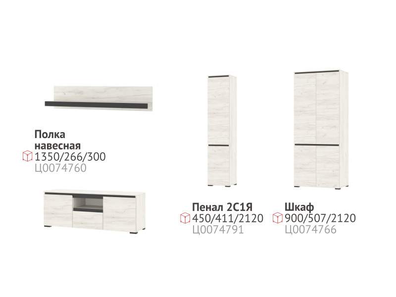 Гостиная Гретта дуб крафт белый/антрацит