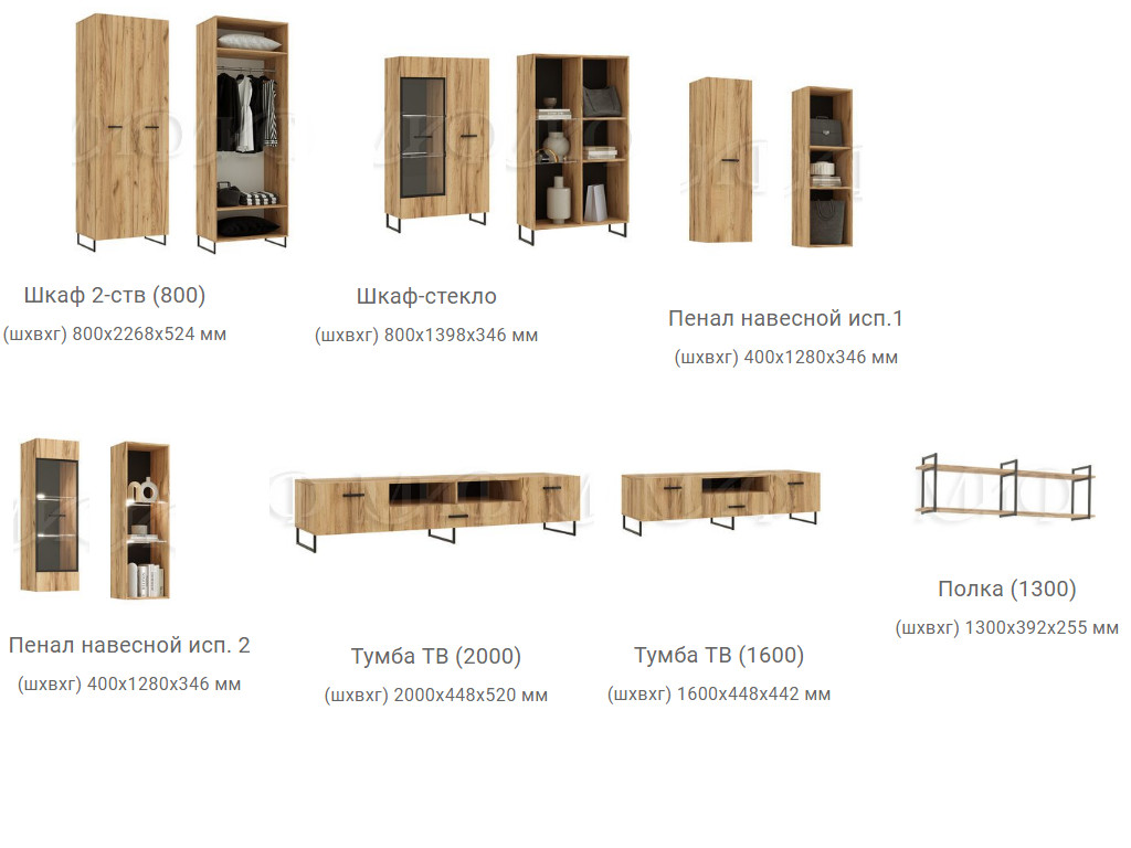 Цена за комплект без подсветки: Шкаф 2-х створчатый, Полка, Тумба ТВ 1600. Шкаф-стекло