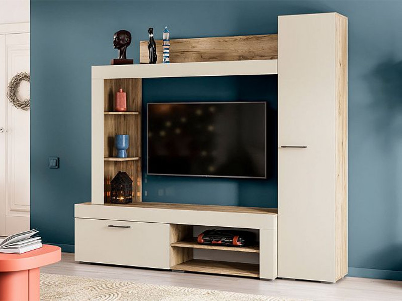 - Гостиная Николь дуб крафт серый/софт айвори