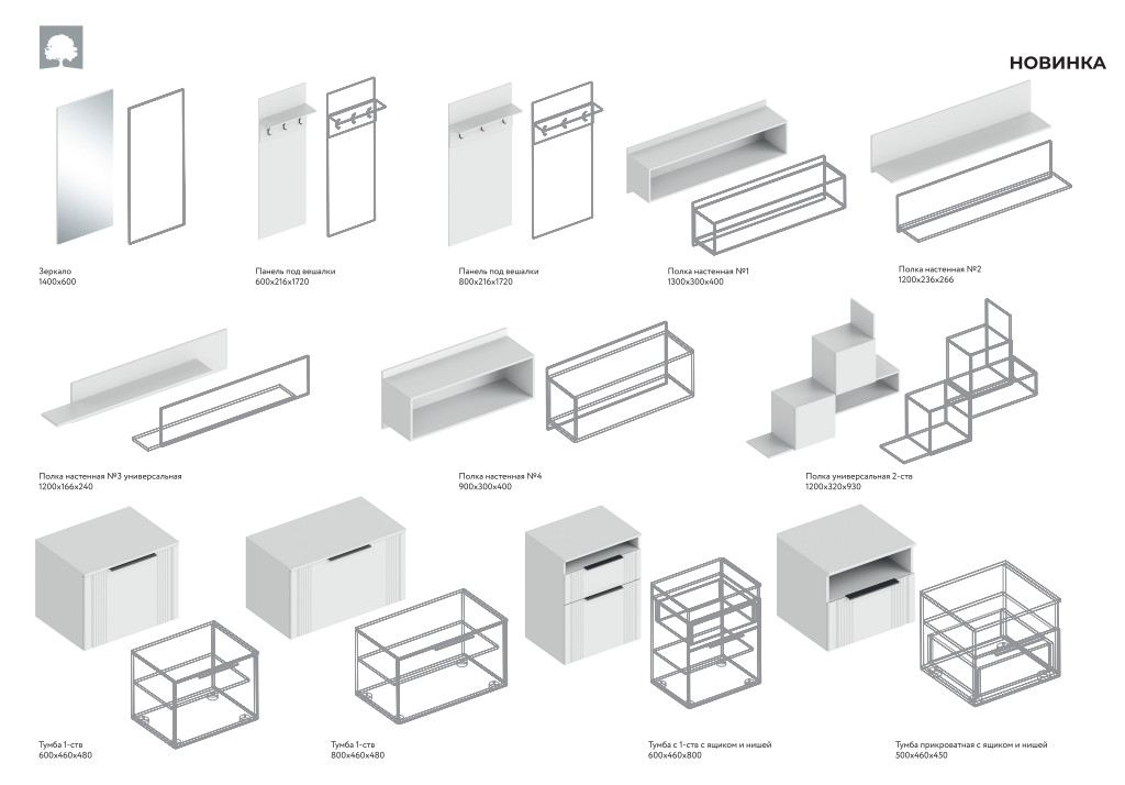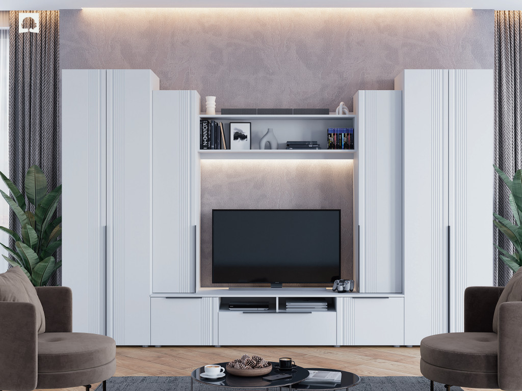 Цена за комплект: Тумба ТВ 2000, Пенал (надстройка) (2шт), Полка настенная №1, Пенал с полками (2шт)
