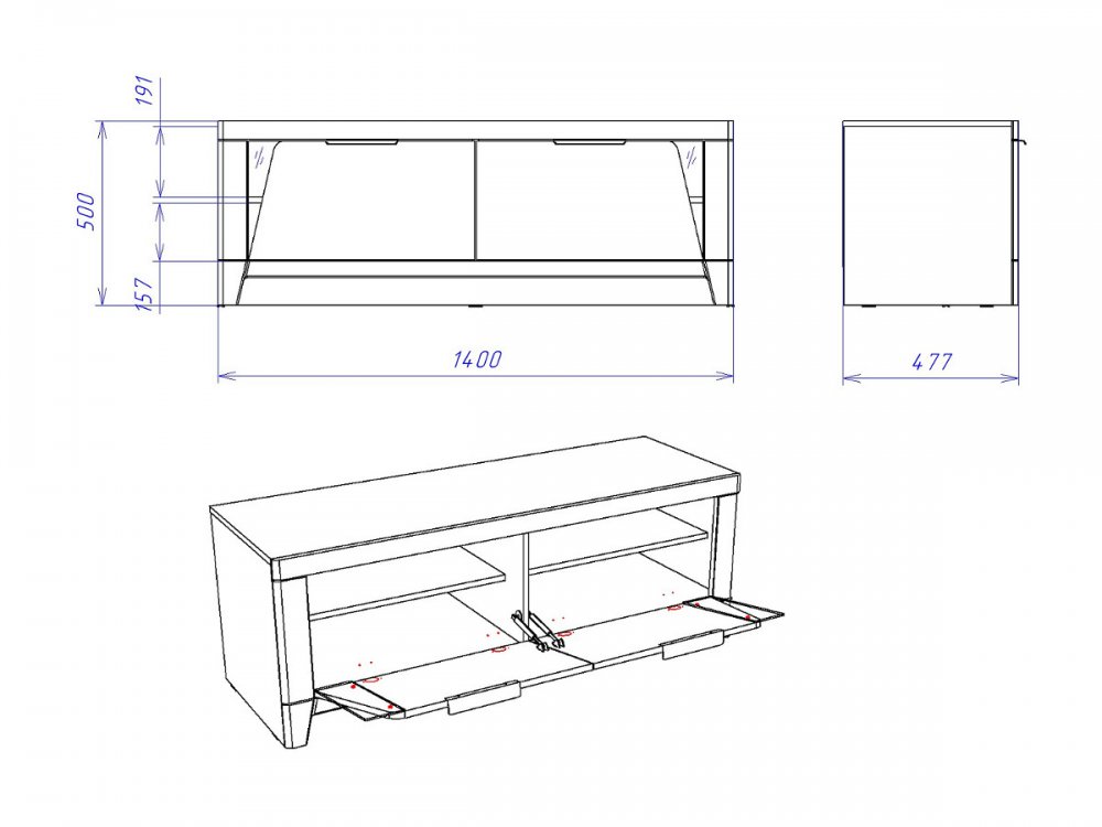 Размер ШхГхВ: 1400*477*500 мм