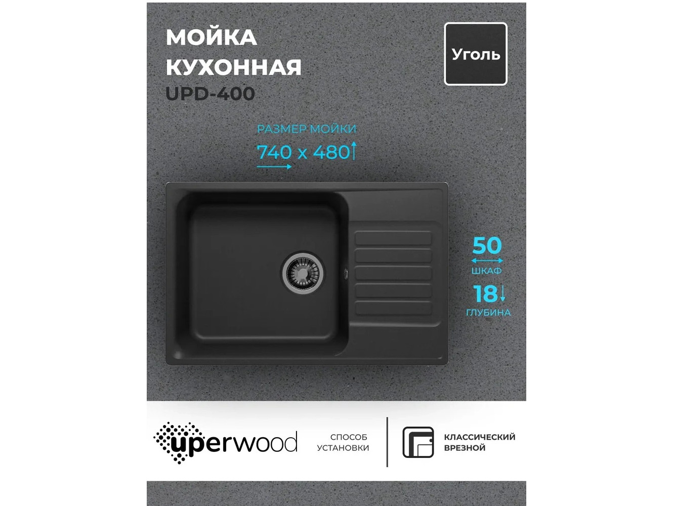 - Кухонная мойка Uperwood UPD-400 уголь