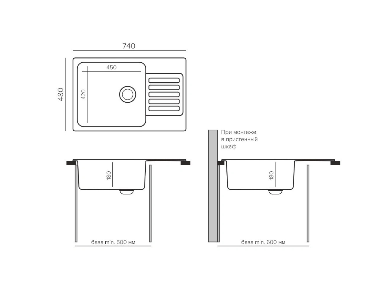 - Глубина чаши (см) 18