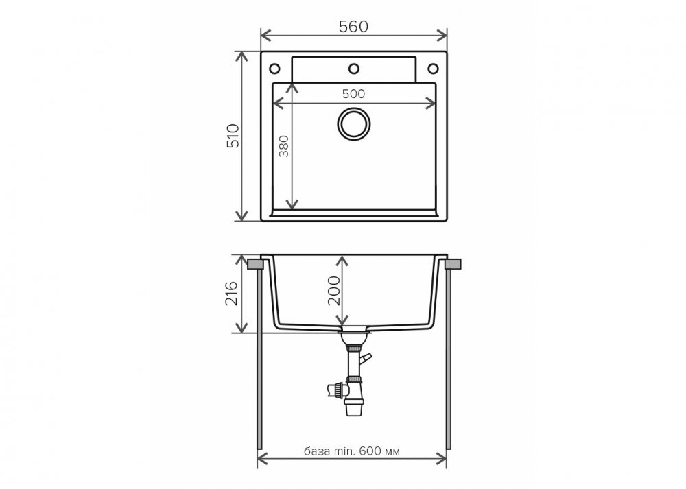 Длина мойки, мм: 560