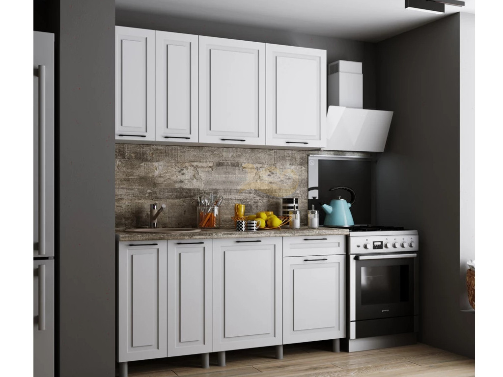 - Кухня Аликанте 1600 МДФ Белый снег без столешницы