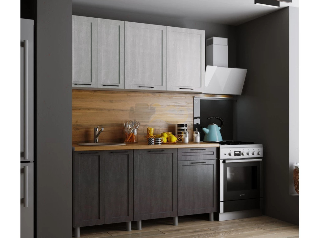 - Кухня Кальяри 1600 МДФ Холст Натуральный/Холст Грей без столешницы