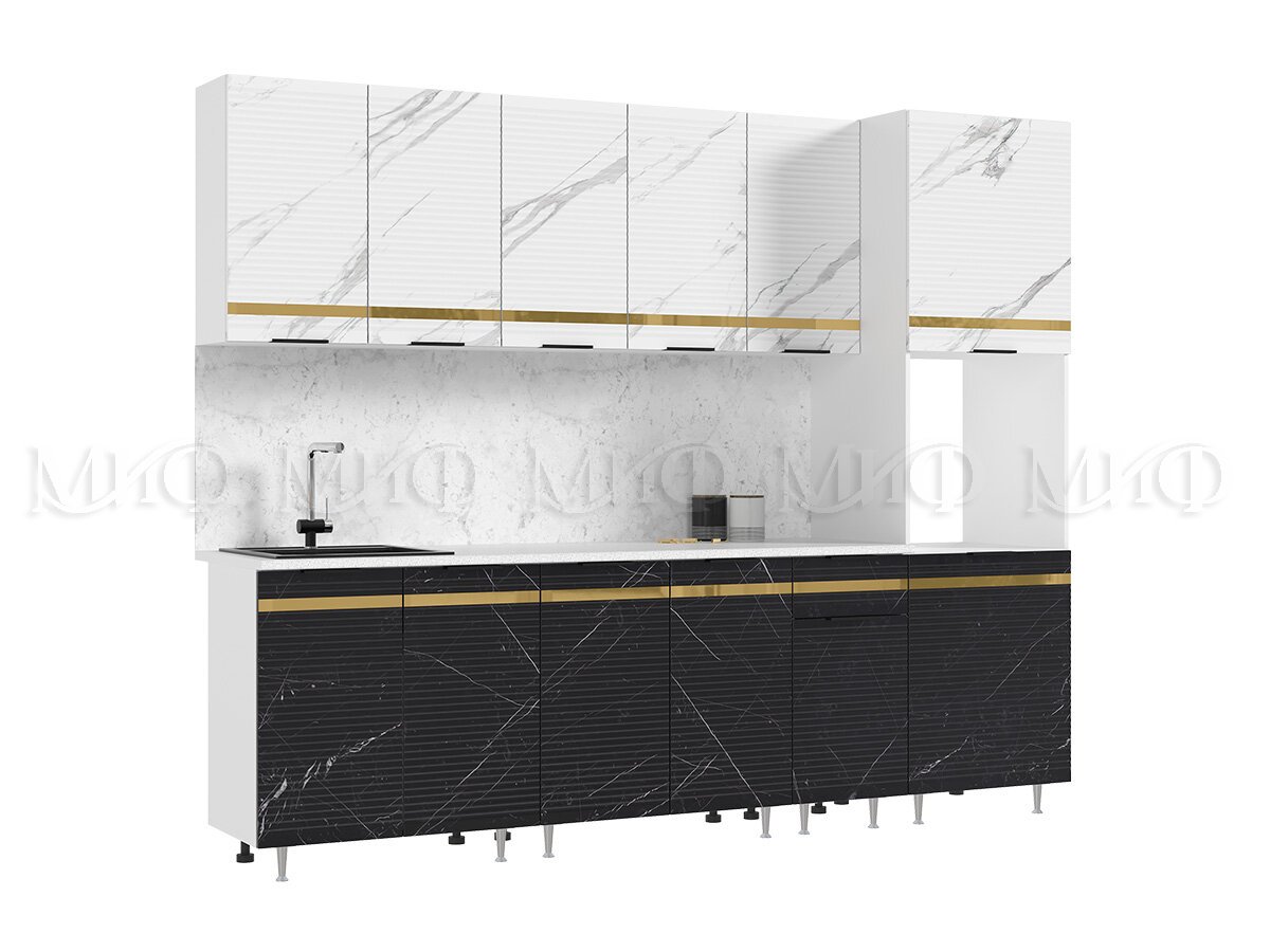 Кухня Милена 2,6 м Мрамор белый софт/Мрамор блэк софт