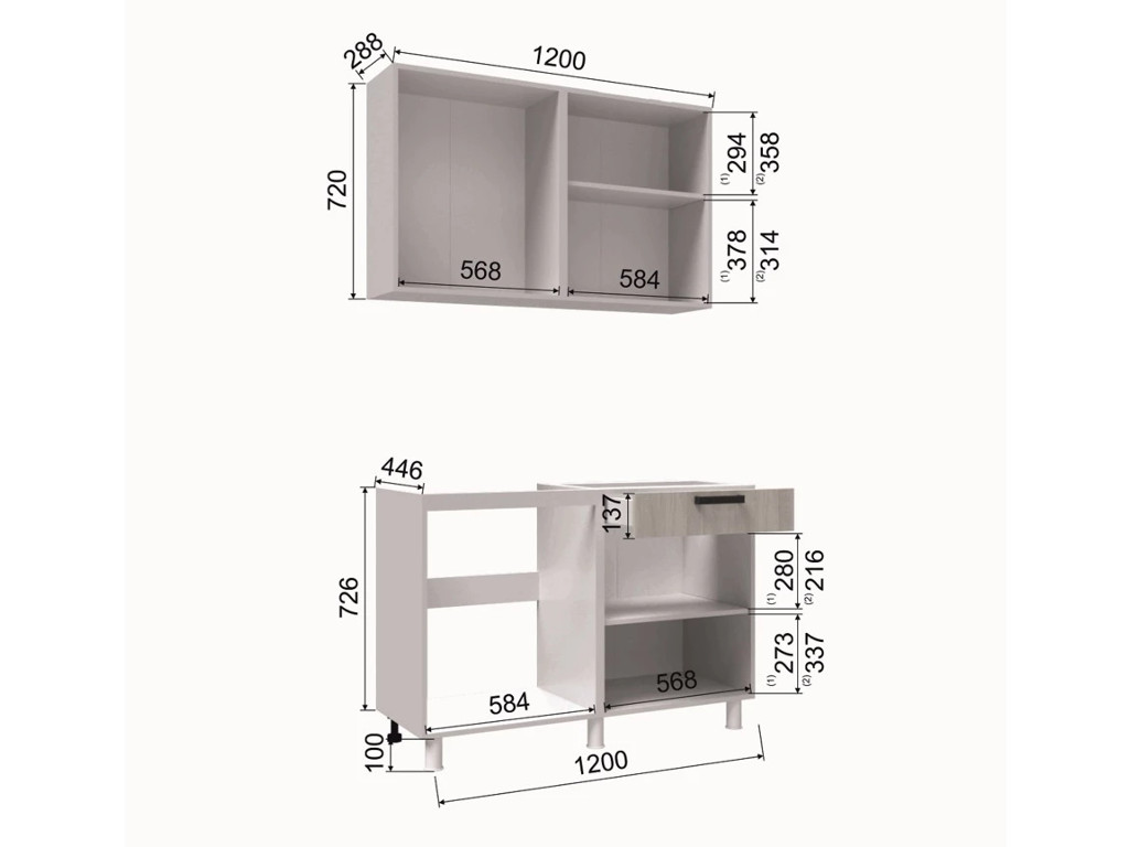 - Кухня Ривьера 1200 МДФ Карбон Брюле/Карбон Латте без столешницы