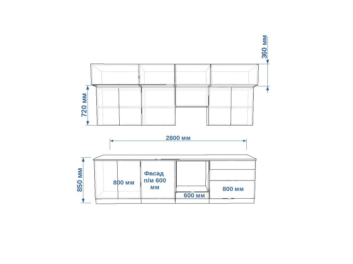 - высота верхних шкафов 720 мм