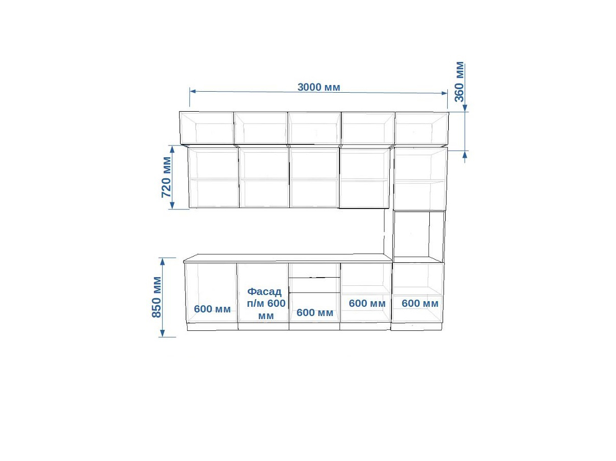 - высота верхних шкафов 720 мм