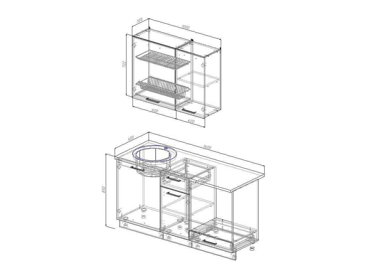 Ширина кухни: 1600 мм