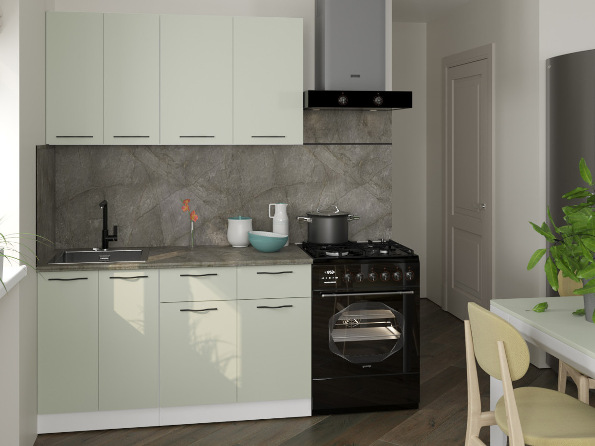 Мойка, смеситель, стеновая панель и посудосушитель в комплект гарнитура не входят.