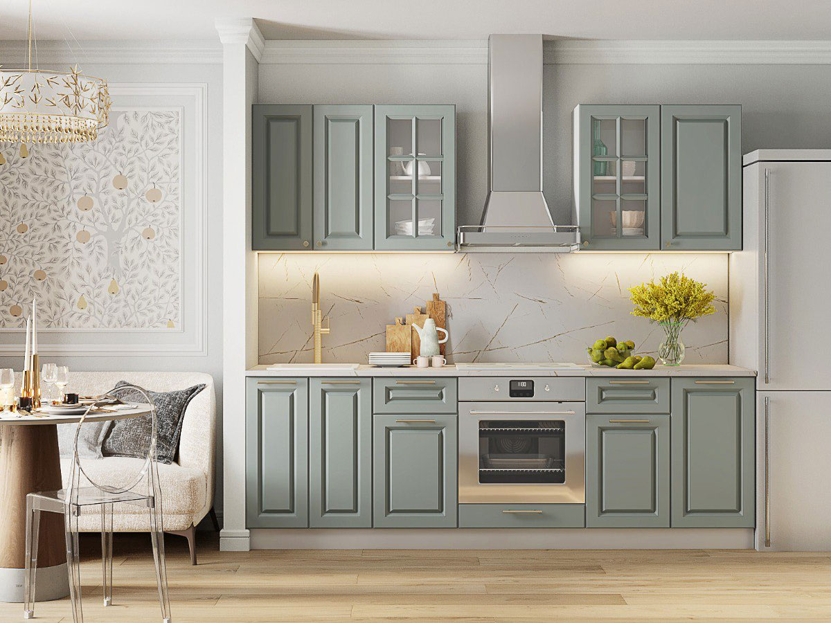 - Кухонный гарнитур Грин Грей Софт 2400 мм