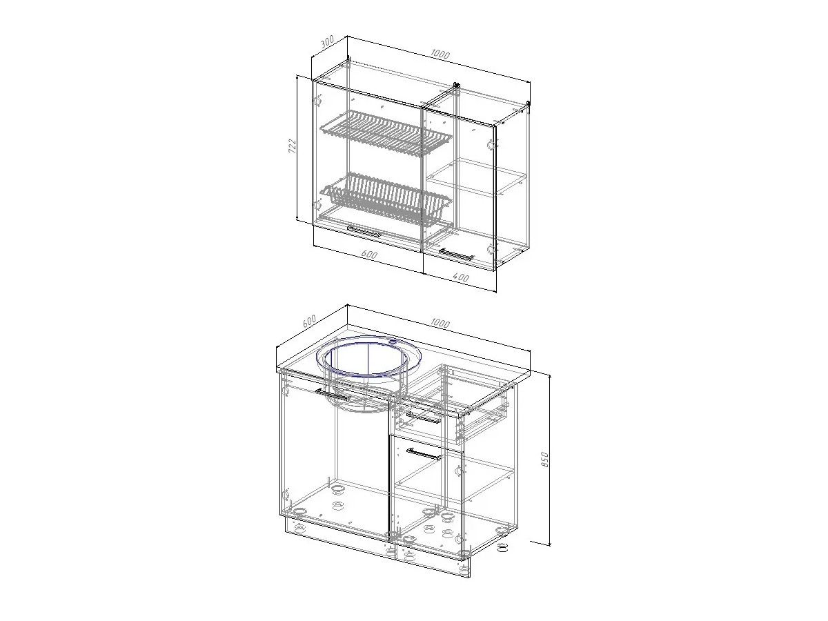 Ширина кухни: 1000мм