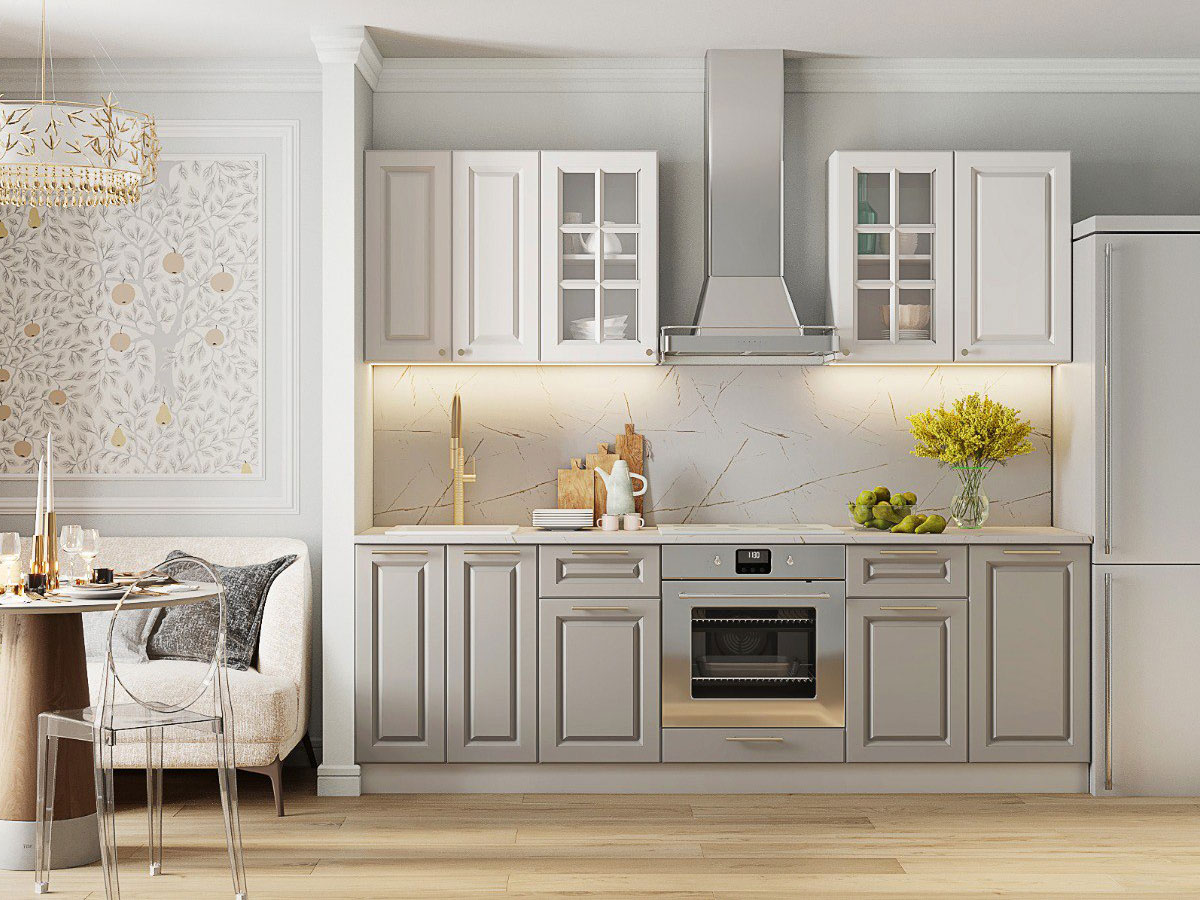 Кухонный гарнитур Кварц Грей Софт-Милк 2400 мм