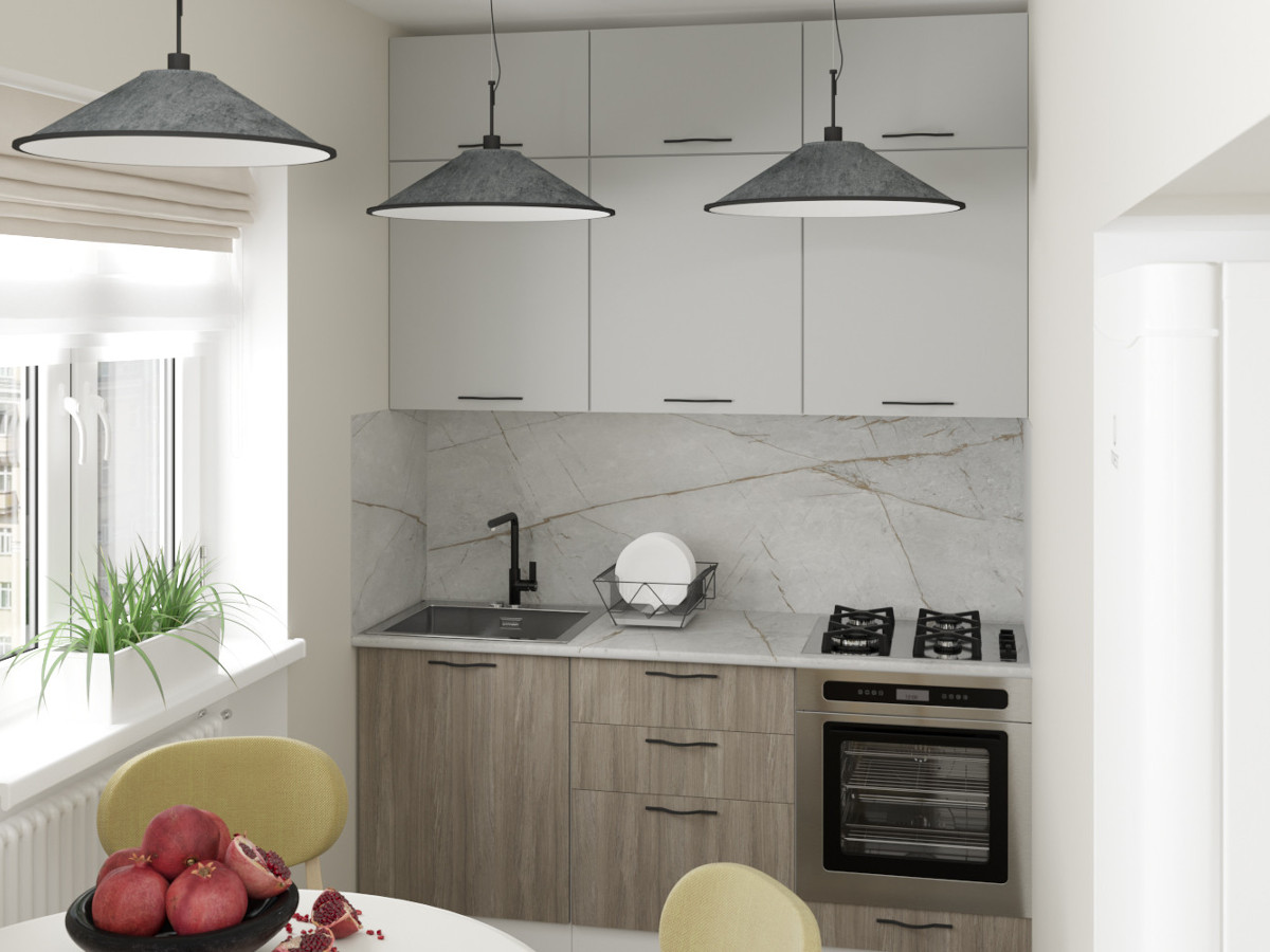 Мойка, смеситель, стеновая панель и посудосушитель в комплект гарнитура не входят.