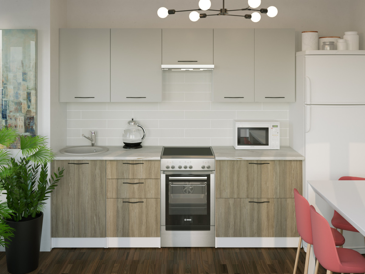 Мойка, смеситель, стеновая панель и посудосушитель в комплект гарнитура не входят.