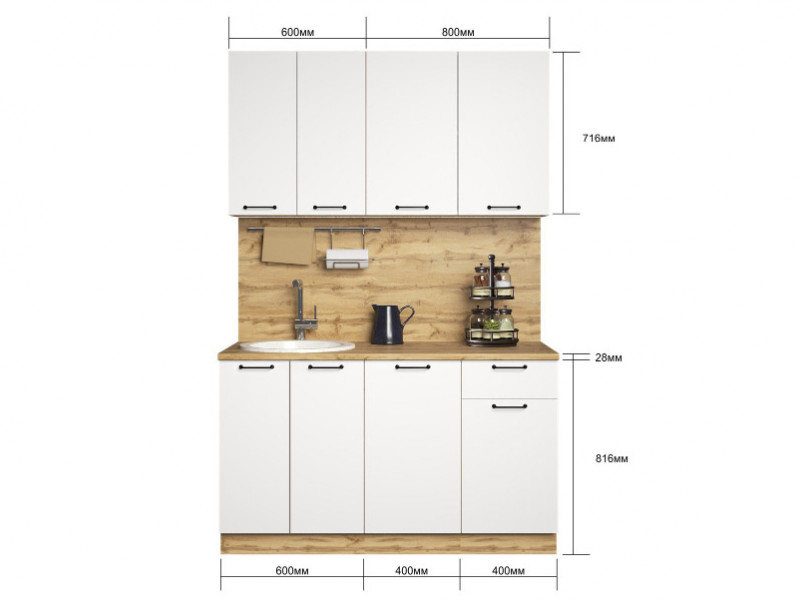 - Кухонный гарнитур Валерия 1400 мм МДФ Вотан/Белый