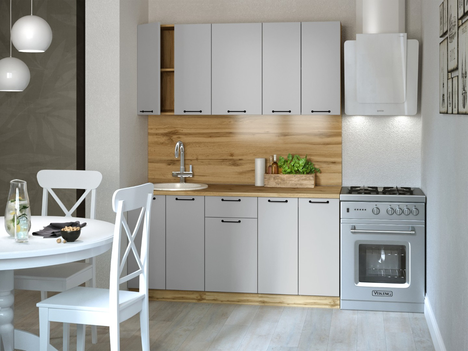 - Кухонный гарнитур Валерия 1600 мм МДФ Вотан/Серый