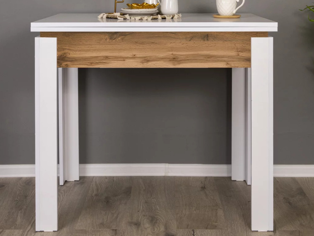 Стол обеденный Doma раскладной Белый бриллиант/Дуб вотан