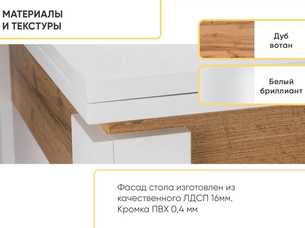 - Стол обеденный Doma раскладной Белый бриллиант/Дуб вотан