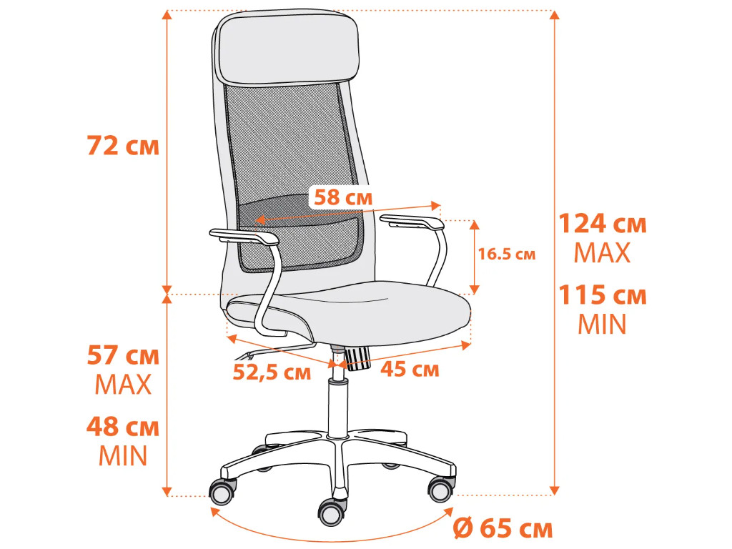 - Надежная 5-лучевая полиамидная крестовина черного цвета диаметром 650 мм