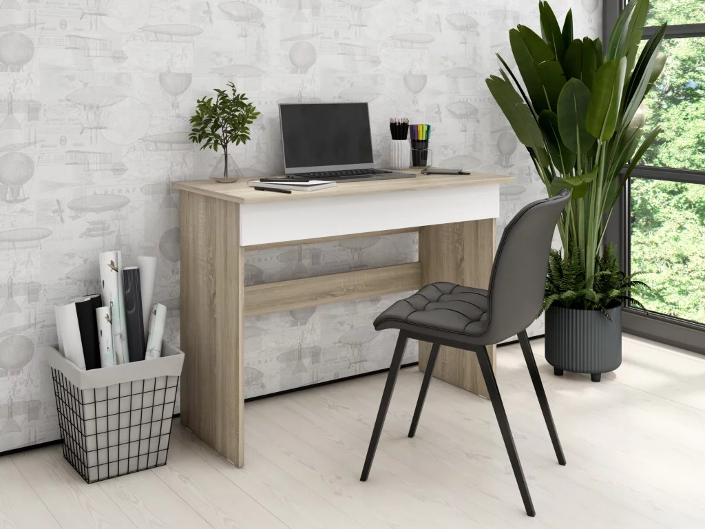 - Стол письменный Памир с ящиком Дуб сонома-Белый шагрень
