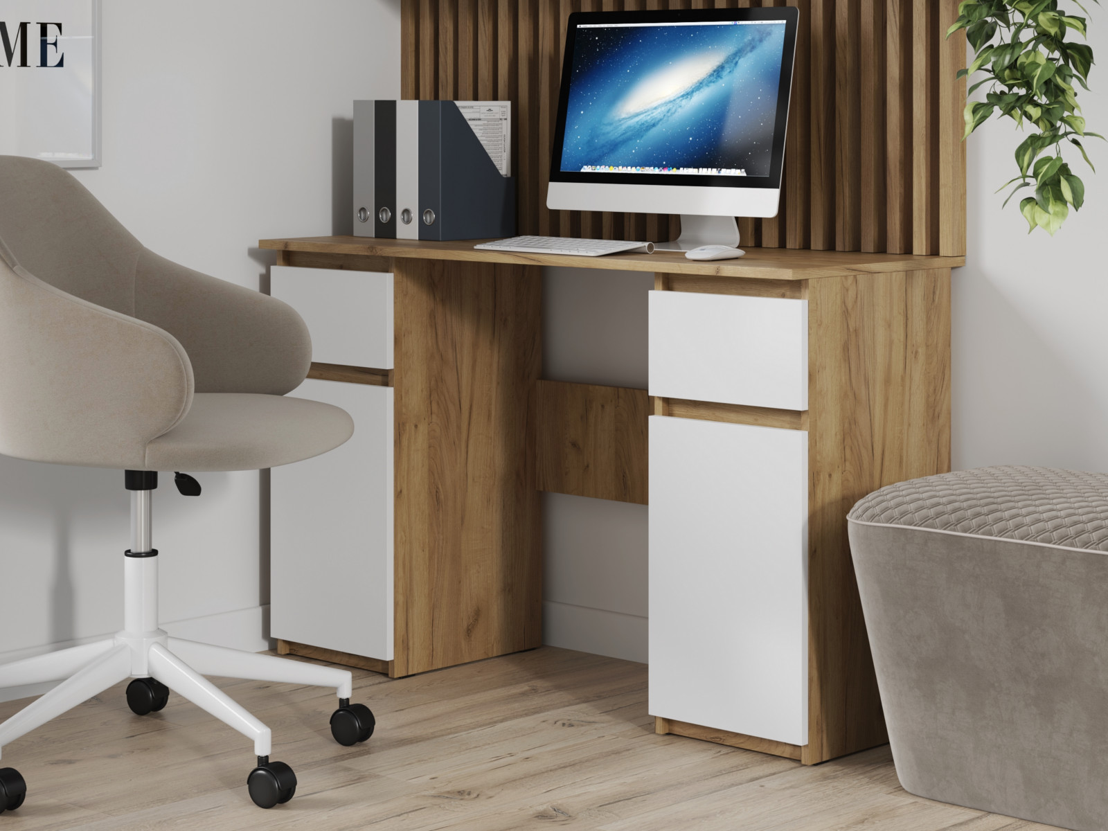 - Широкая столешница (1158 × 450 мм) с кромкой в цвет стола.