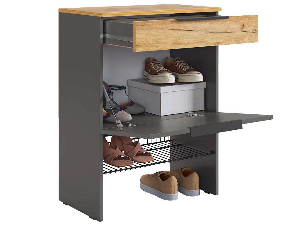 - Обувница Баско графит/дуб крафт золотой