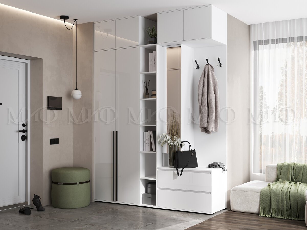 - Прихожая модульная Норд Белый глянец холодный