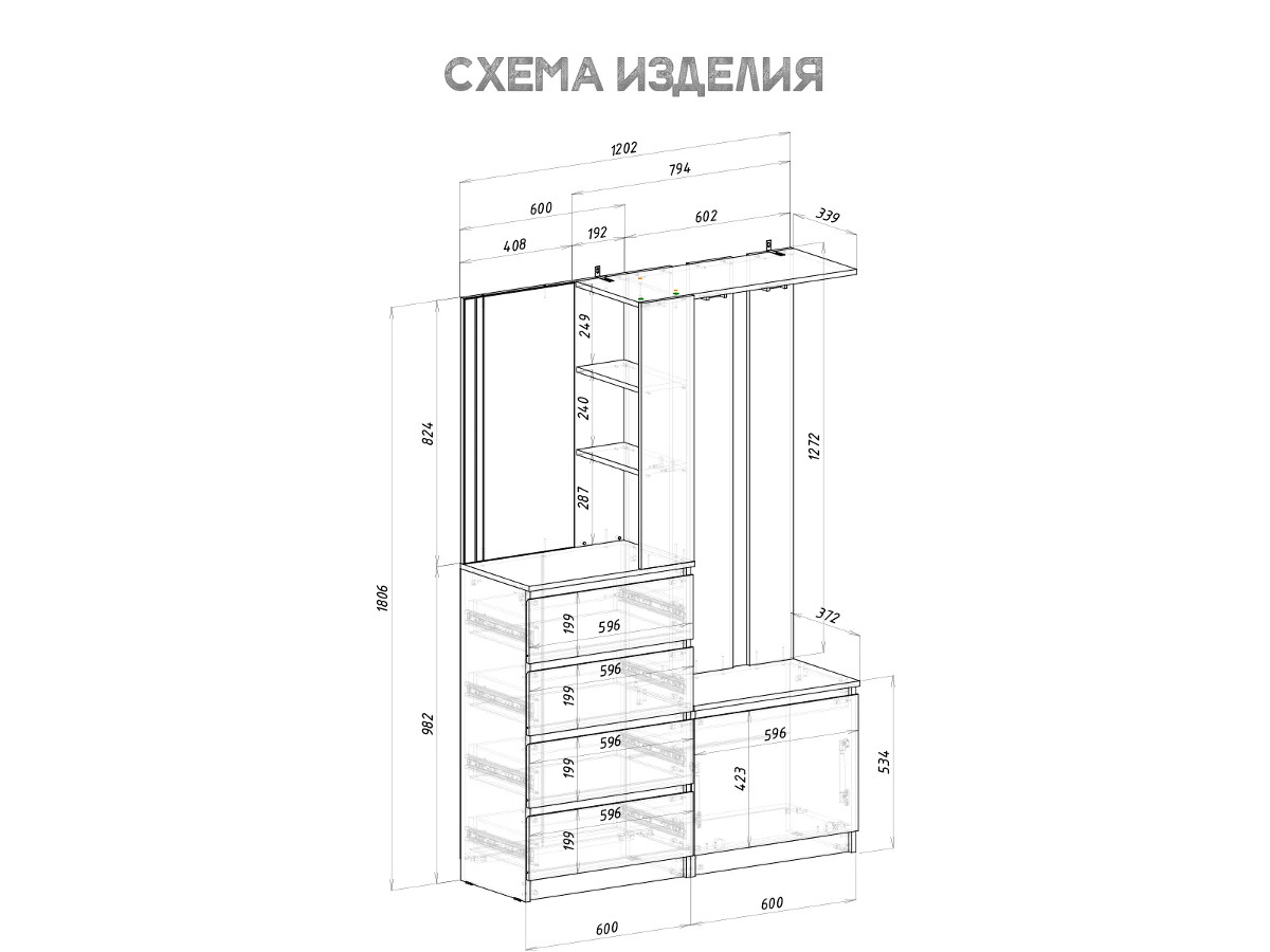 Размеры (Ш*В*Г): 1203*1806*376 мм