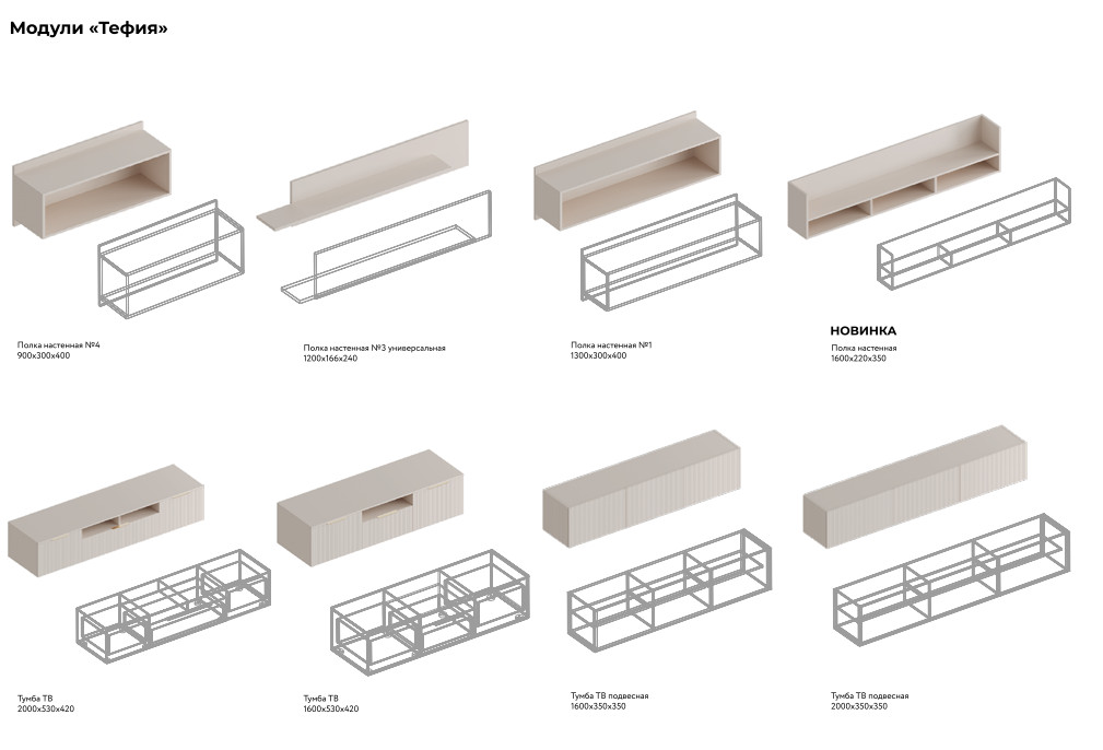 - Фасад: МДФ с фрезеровкой, плёнка ПВХ Софт Сантьяго, толщина 320-350 микрон МКМ (с праймером)