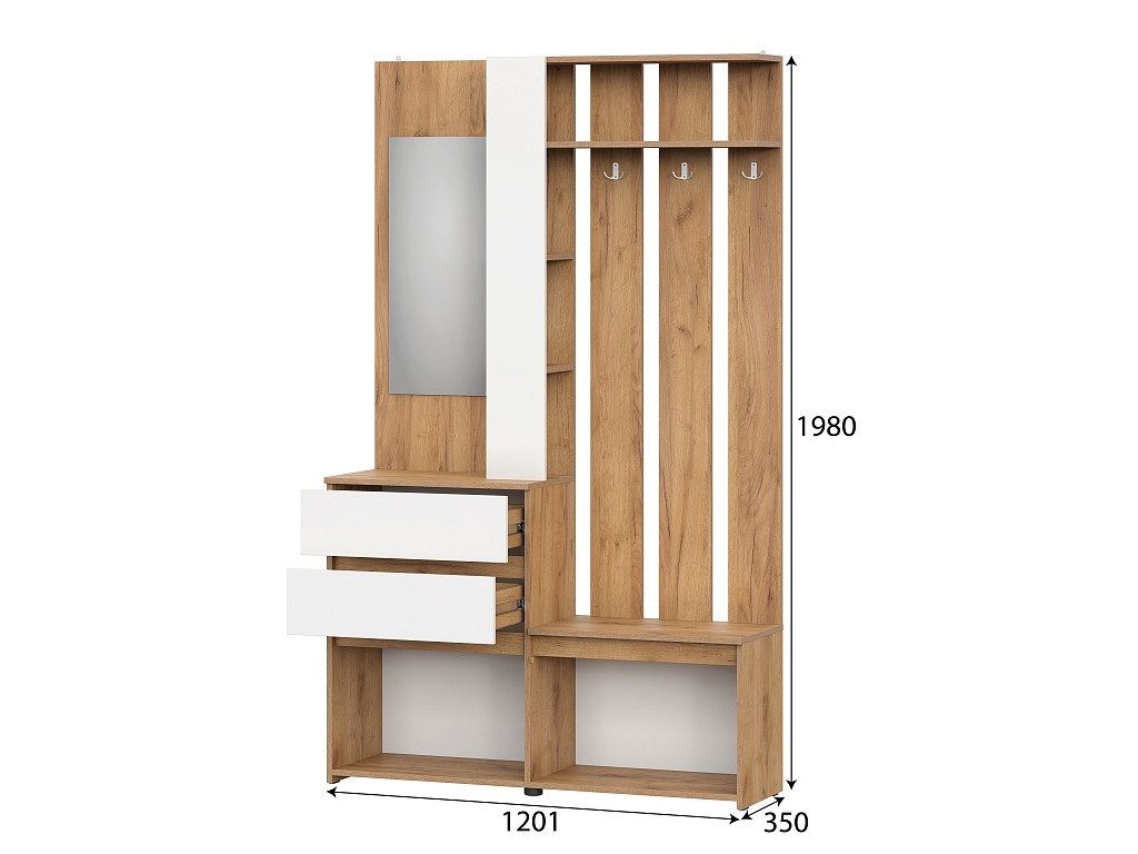 - Вешалка с зеркалом Некст 1 Дуб Золотой/Белый